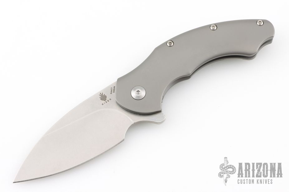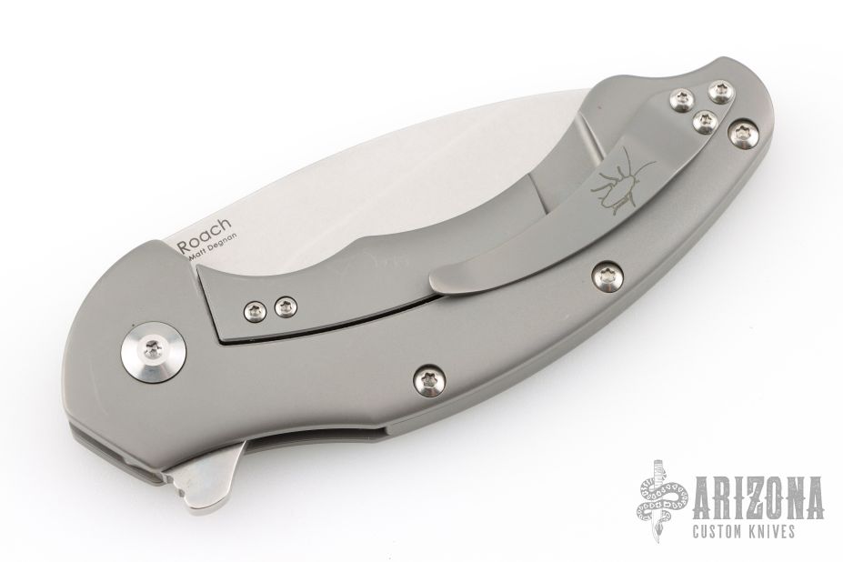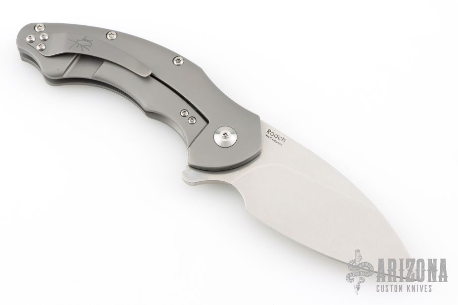 The Matt Degnan designed Roach knife is an exciting Kizer model that's now available with a titanium handle. It has a wide spear point style blade made from satin finished CPM-S35VN. The handle is 6AL4V titanium in a classic matte gray finish. The Roach features a sturdy frame lock, custom pivot, and a pocket clip oriented for tip-up carry and marked with a Roach logo. With elegant curves and smooth flipping action, the Kizer Roach will be a hard knife to put down.