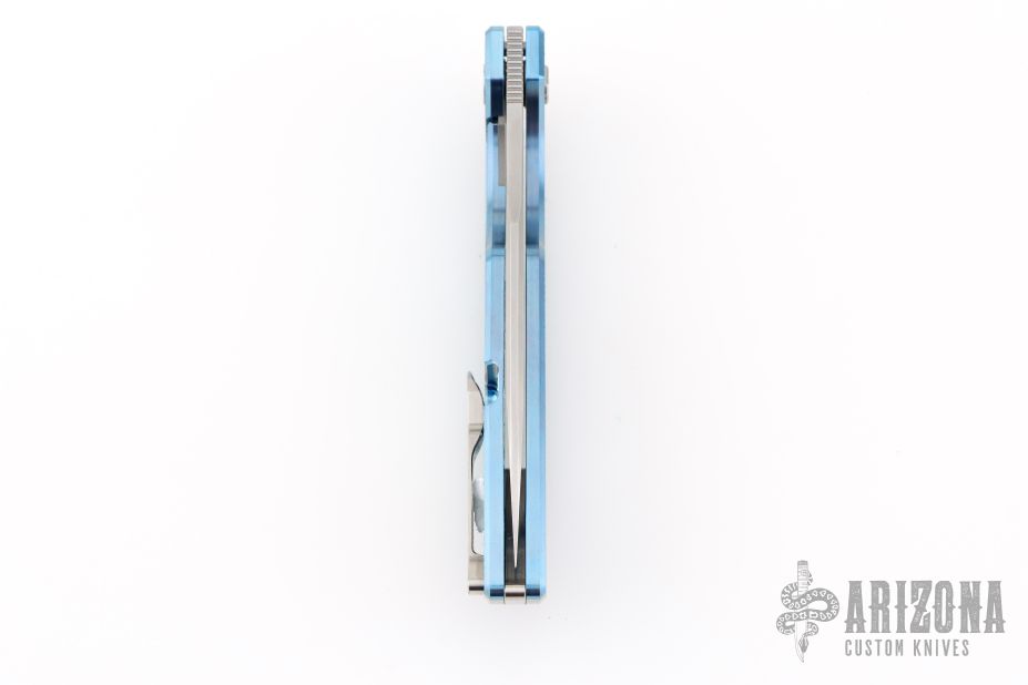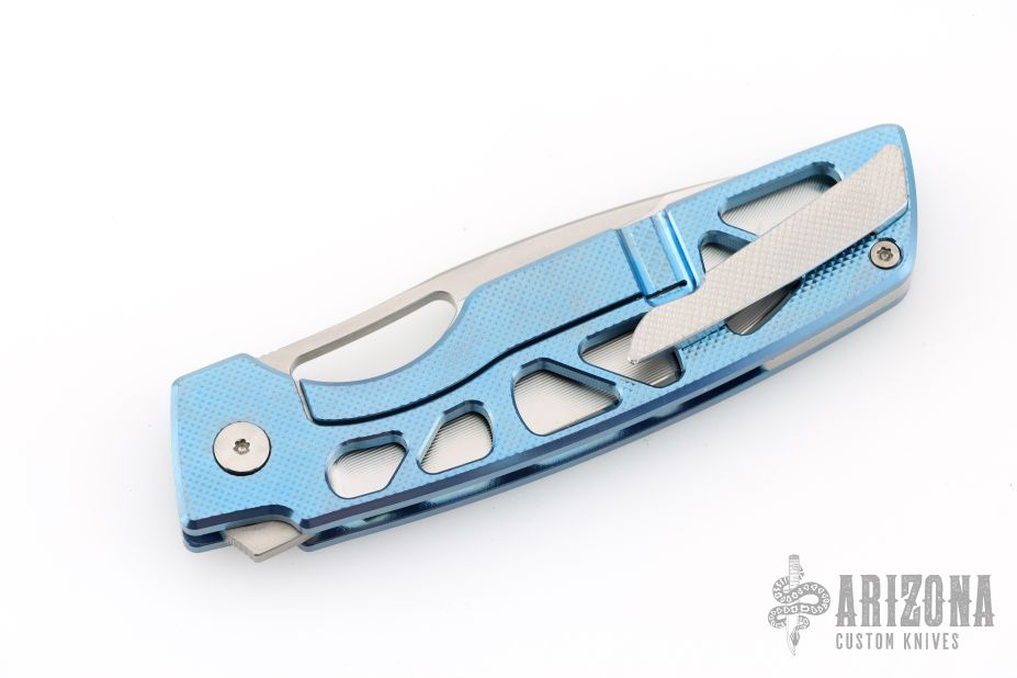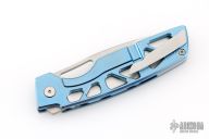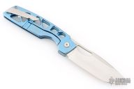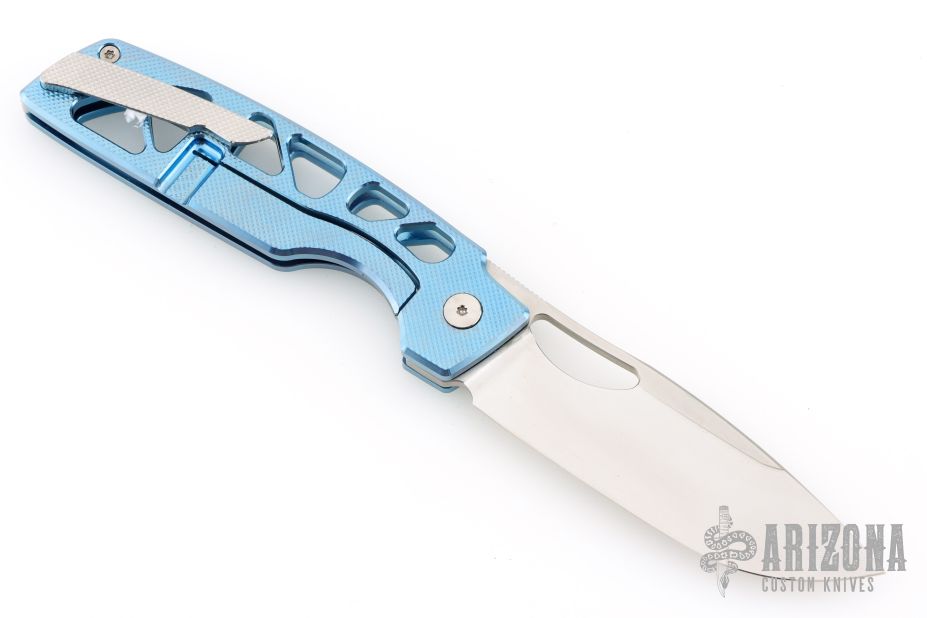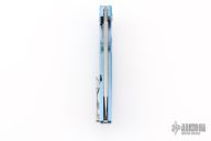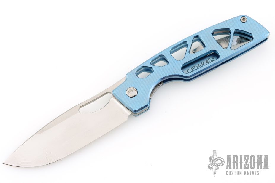This Cedar Saltwater by Robjohnsons features a milled and satin finished Vanax blade with thumbhole, notched thumbrest and flipper. The handle has a skeleton and checker milled anodized titanium frame with a satin finished backspacer and tip up clip with hidden screws. Rides on bearings, nice detent, lockup and blade seating. Comes with original box and COA dated 8/15/25. Excellent condition.