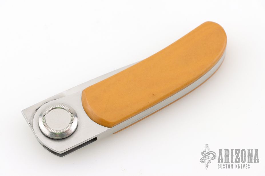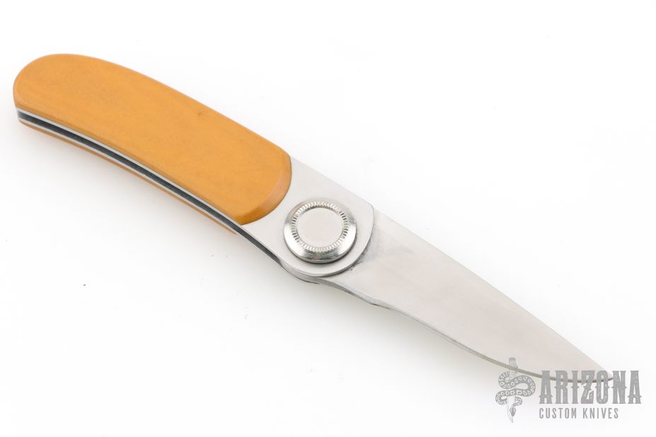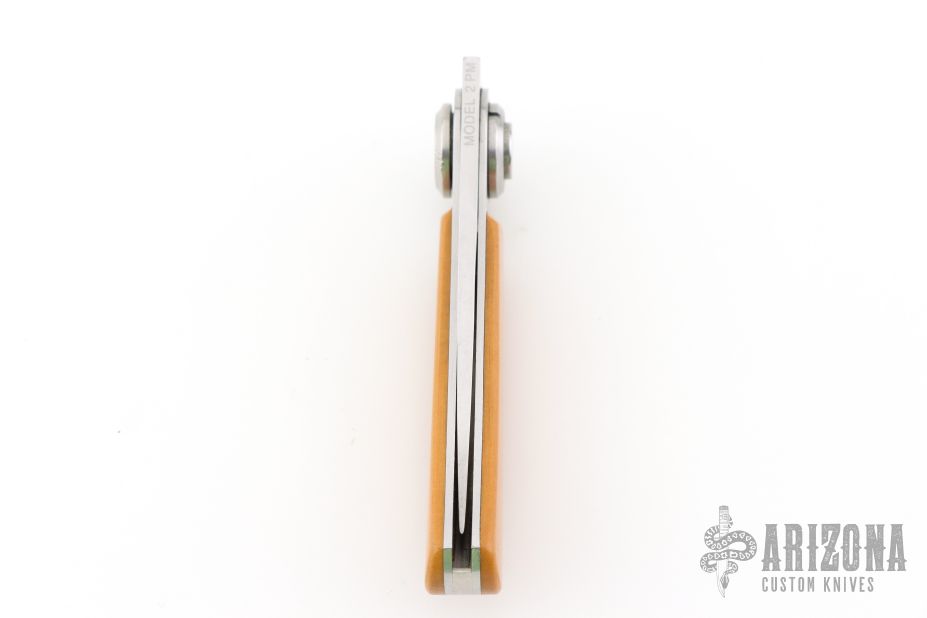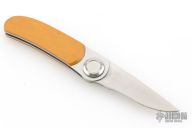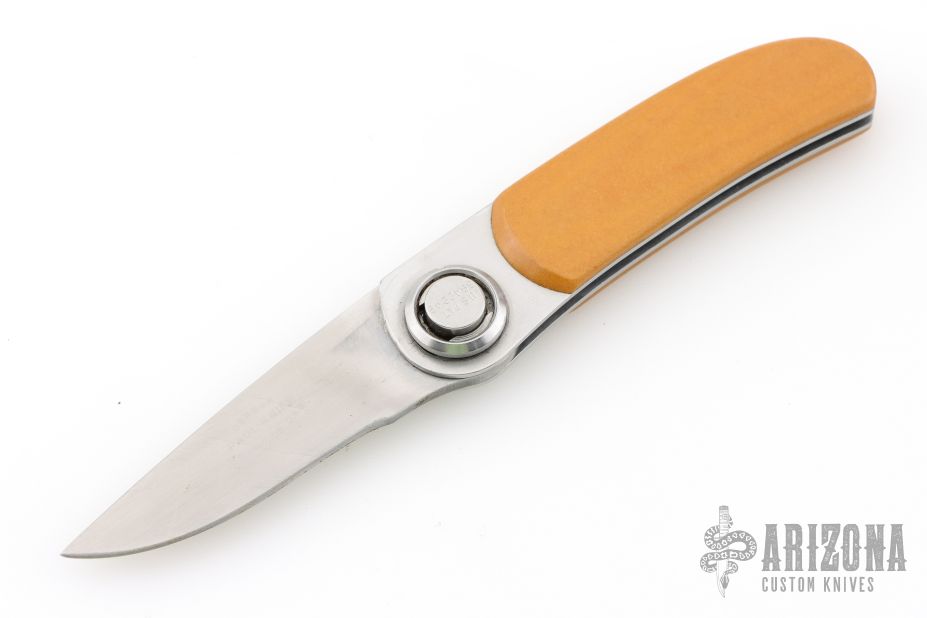 Made by Peterson Precision Engineering and marketed by Gerber, the Paul knife was introduced in 1996 and discontinued in 1997 with a total run of about 23,000. This folder has an axial locking mechanism and a handle scale of  micarta. This knife was assembled by hand. Heavy scuffs and scratches otherwise good condition.