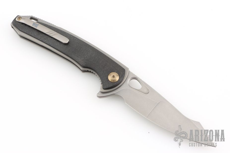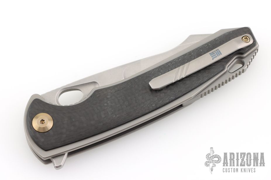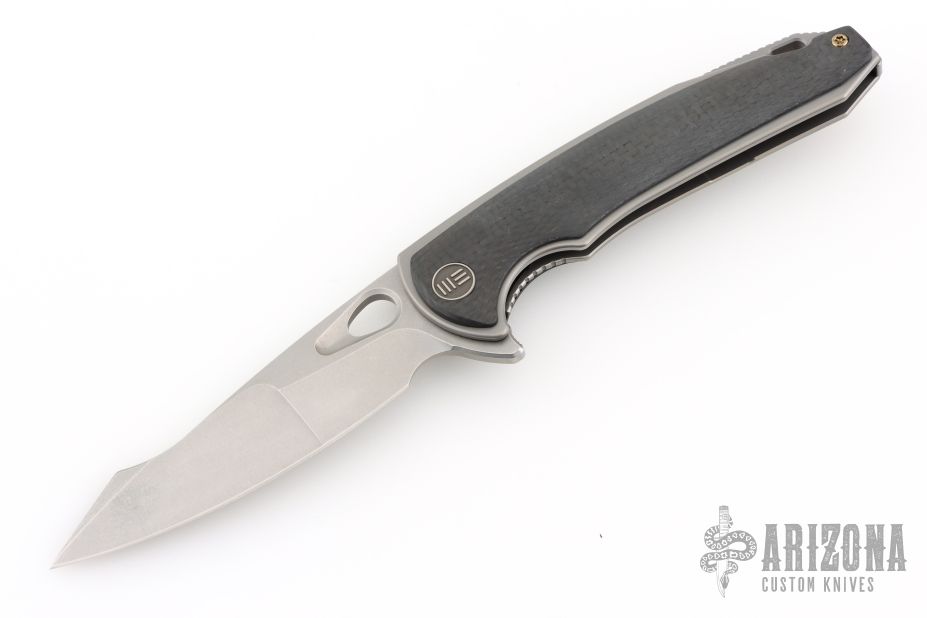 The 810 model from We Knife is a fantastic knife and, in our opinion, represents an incredible value for what you're getting. This is an amazingly feature-laden knife for its price point. It flips open extremely smoothly and quickly since it rides on ceramic bearings with a nice thwack upon lockup. The 3.9" modified drop point blade is made from CPM-S35VN stainless steel with a compound grind and a stonewashed finish. The properly designed flipper tab rockets the blade out and also doubles as a finger guard while open. The slender, ergonomic handle is made from contoured carbon fiber over gray titanium liners. The slight curvature to the handle locks it into your hand perfectly for extended hard use cutting tasks while the slim shape makes it very easy to carry. The pocket clip, backspacer, screws, and pivot cap are all 6Al4V titanium for maximum quality assurance and you have a small lanyard slot to use if necessary. This is an excellent tactical design that can flex into an EDC role easily and effectively, proudly manufactured in China to extremely precise tolerances.