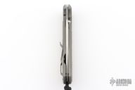 The idea behind the Sebenza has never wavered: to craft the best pocket knife in the world. Premium materials, paired with pristine finishes, and a bank-vault lock-up— all within an incredibly light, precision-made tool. That commitment continues with the new Sebenza 31 with a Ceramic Ball Interface. Like the very first Sebenza, it delivers the same warm “click” and heirloom quality produced from aerospace tolerances. The Sebenza 31 brings finer details to an already fine knife — and another steady, reliable step forward. This one has a satin finished blade with double gold thumbstuds, and bead blasted titanium frame with natural canvas micarta inlays. Includes the original box, cloth, lube, papers, and COA dated July 16, 2020. Excellent condition.