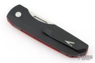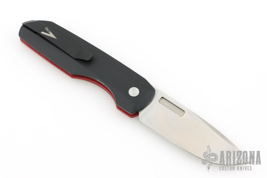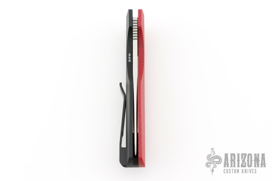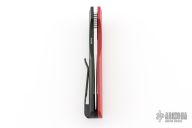 This Synapse LTD by Pro-Tech is a Vero Engineering design. It has a satin finished blade with notched thumbrest. The handle has a red linen micarta and black aluminum frame, mother-of-pearl push button, tip up black titanium clip with hidden screws. Comes with original box and papers. #44 of 45. New from maker at the 2025 CCKS.