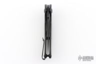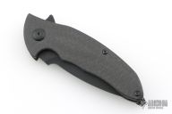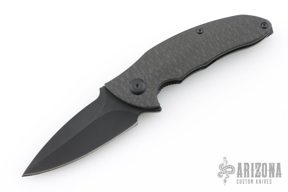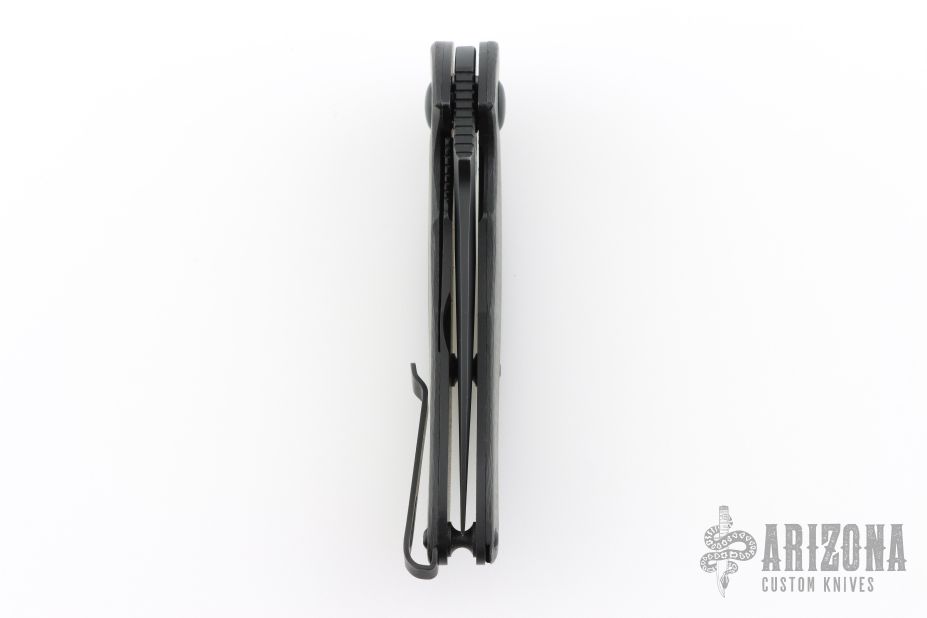This Caliber CF Flipper by Brous Blades features a satin finished spear point blade with notched thumbrest and flipper. The handle has carbon fiber scales, bead blasted titanium liners, and a tip up reversible stainless steel clip. Nice detent, lockup and blade seating. Comes with original box and papers dated 6/20/14. #447/500. Has some light scuffs and scratches, excellent condition otherwise.