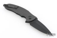 "Jason Brous began his efforts in knifemaking with the benefit of nearly 10 years of experience in CNC machining. His father owns a shop that specializes in the custom machining of high-precision components, mainly for the medical industry. Jason spent a lot of time in his father’s shop while growing up, and by his mid teens was actively helping out with production. His skills and knowledge steadily increased and by the time he was 20 he was a seasoned and very competent machinist. Jason's interest in knives actually began with art - specifically a style called “Bio-mechanical” - as practiced by one of his favorite artists, a Brazilian painter and tattooist named Lango. Biomechanical art (also called Biomech) is a surrealistic style of art that combines elements of machines and robotics with organic animal features. Intrigued by this style of art and its similarity to many fantasy knives, Jason figured that knifemaking would be a natural extension of his metalworking skills and an appropriate medium for his artistic ideas. Although he had no specific training in knifemaking, in 2010 he designed and made his first knife - a fantasy design with a Biomech flavor. Through persistent trial and error, Jason changed his style of knife design to focus on functional simplicity, while still maintaining a strong artistic signature. His early successes came in the form of a series of stout neck knives with dual finger-hole grips. Fans of these “Silent Soldier” neck knives began asking for other expressions of the design. Since then, Jason has created numerous variations including a clip point version, a tanto version and the very popular folder version called the Silent Soldier Flipper."