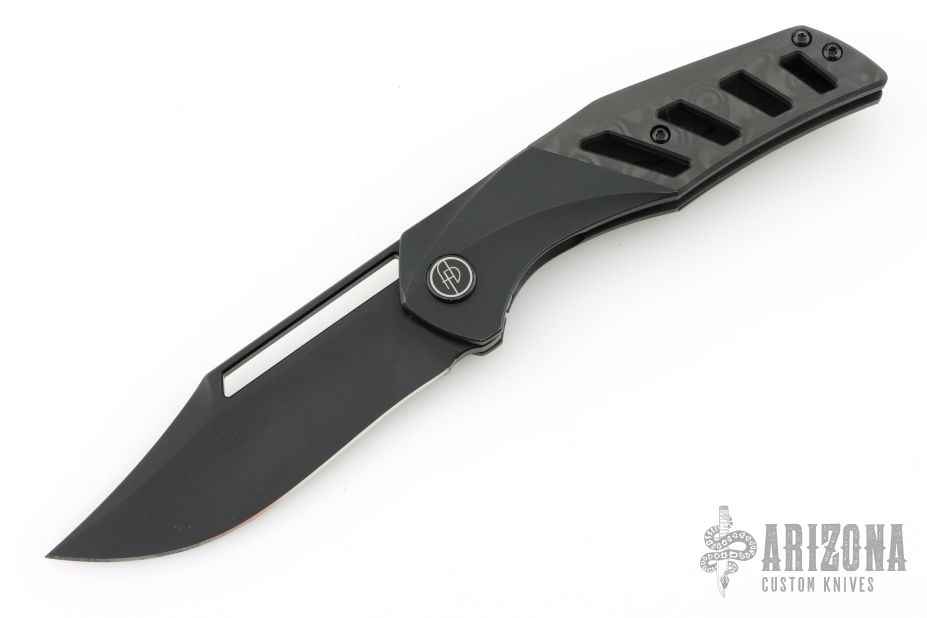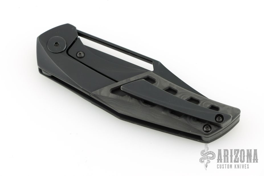 This version has a Black PVD Titanium Handle with Carbon Fiber and Black PVD blade.