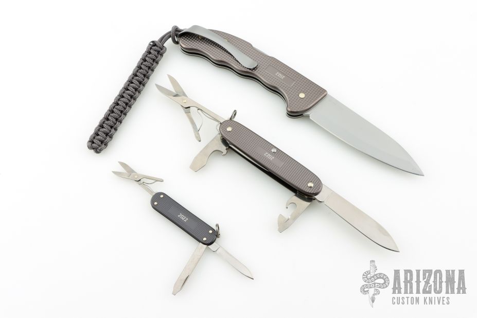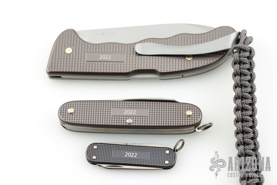 This limited-edition Victorinox Alox set includes three models: Classic SD, Pioneer X, and the new Evoke, each engraved with the year and presented in the original gift box with certificate.