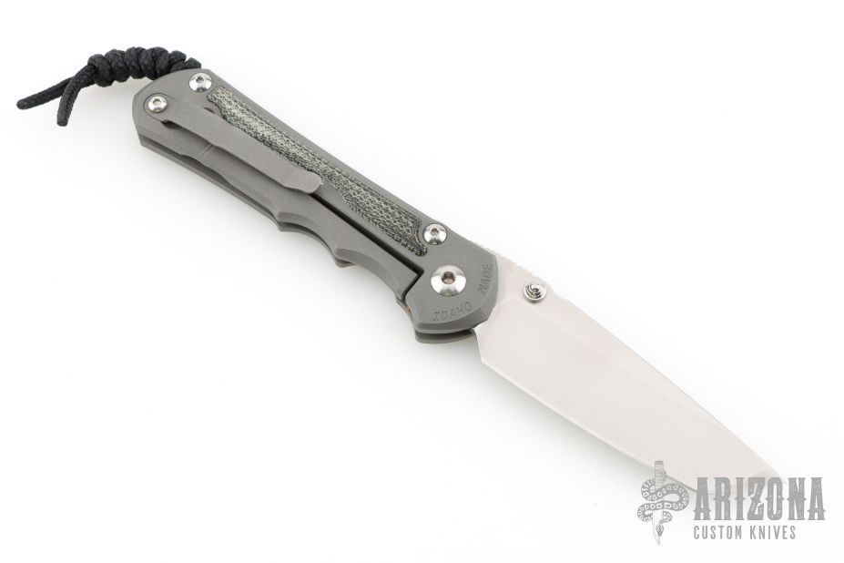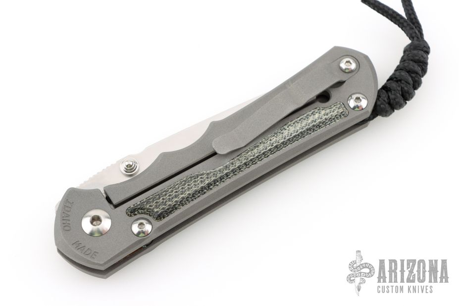 This Large Inkosi from Chris Reeve features a tumble finish tanto blade with dual thumb-studs and a blasted titanium frame with black canvas micarta inlays, tip up titanium pocket clip. Nice detent, lockup and blade seating. Comes with original box, papers dated December 16, 2019. Includes custom ti clip & Reeve lanyard with bead.  Excellent condition.