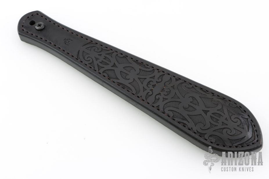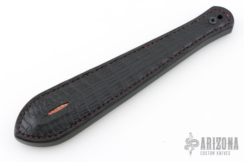 This Sap by RMJ is made of black gator print leather. Has a lanyard hole. Has a copper inlay that also has a gator skin texture. Comes in an RMJ/GPF bag. Excellent condition.