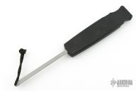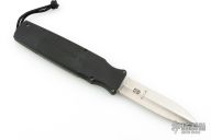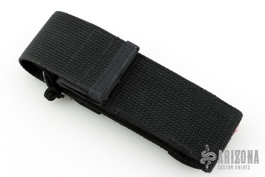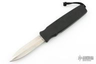 This Border Patrol OTF auto opens by pressing down on the bar on the handle spine. The knife closes by pressing the locking mechanism on the opposite side and pulling the charging handle on the rear. Very strong and fast opening. Both edges of the blade are sharpened. Nicely contoured black aluminum handle. Numbered 0294. Comes in a nylon belt sheath. Has some scuffs and scratches on the handle, and a few marks on the blade. Good condition otherwise.