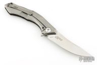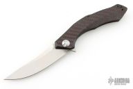 This 0462 Sinkevich Design flipper by Zero Tolerance features a satin finished upswept blade with flipper and swedge. The handle has a red/black carbon fiber and tumbled titanium frame, black aluminum backspacer and a tip up reversible titanium clip. Nice detent, lockup and blade seating, rides on bearings. Has stainless steel lockface insert and overtravel stop, ceramic detent ball. S/N 8262. Has some light scuffs and scratches, great condition otherwise.