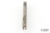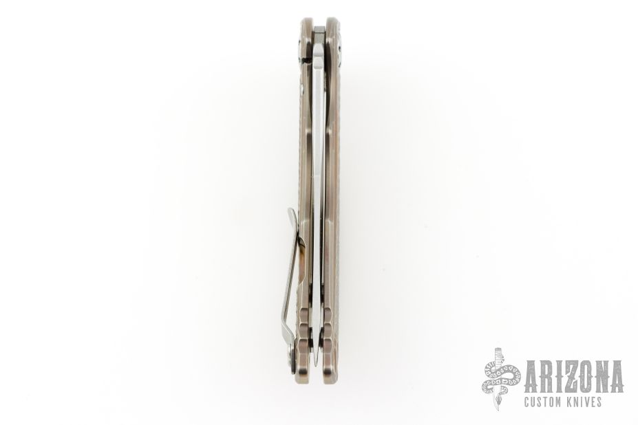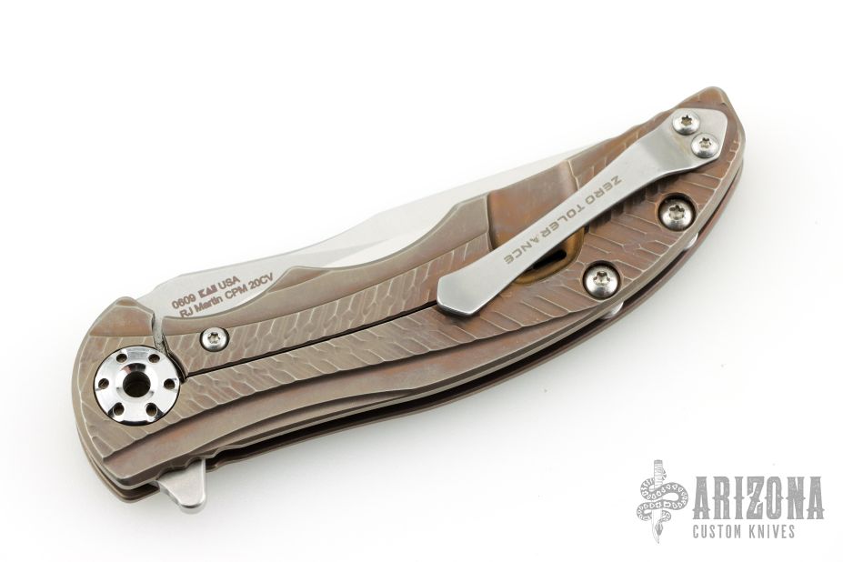 This 0609 RJ Martin flipper by Zero Tolerance features a satin finished blade with stonewashed flats, notched thumbrest and flipper. The handle has a milled and anodized titanium frame with a tip up reversible stainless steel clip. Rides on bearings, nice detent, lockup and blade seating. S/N 66411. Has some scuffs and scratches, great condition otherwise.
