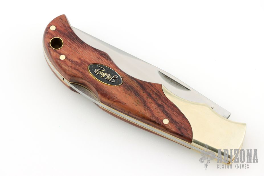 This Lockback by Herbertz features a satin finished blade with nail nick. The handle has nickel silver bolsters, wood covers, brass liners and steel spring. Has a couple light scuffs and scratches, great condition otherwise.