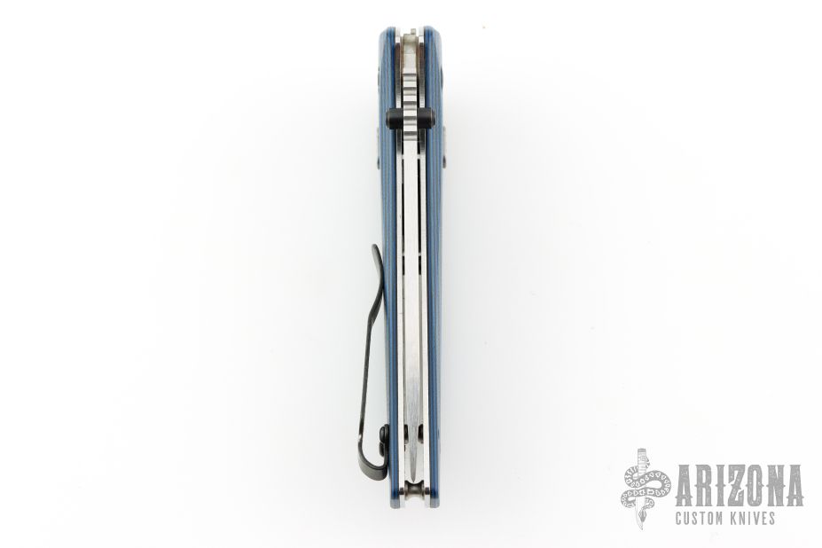 - Handle: Blue and black contoured G10 with stainless steel liners
