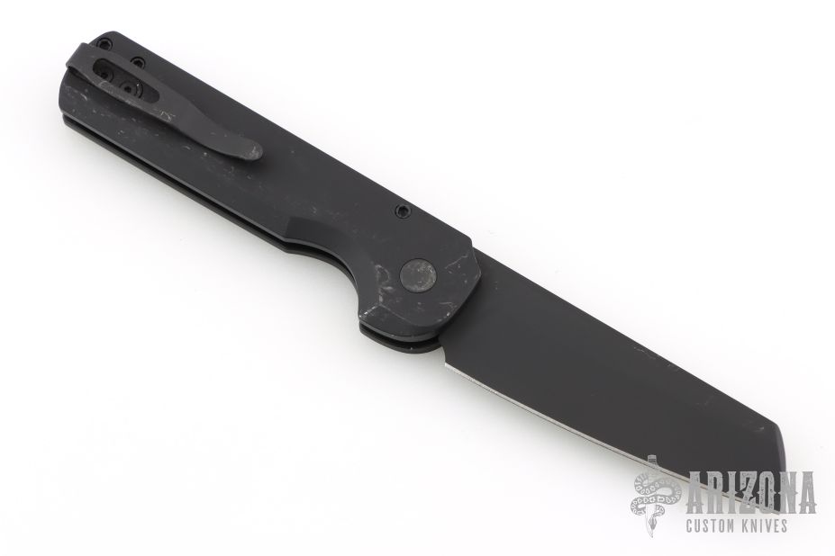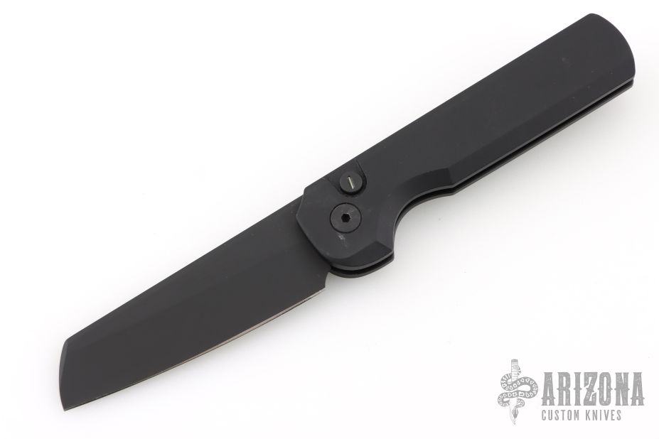 This Slimfoot Auto has a black anodized aluminum handle and a black blade.