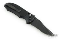 The Triage Auto has an AXIS lock with pull-release and an integrated safety. The hook-shaped safety cutter features automatic opening as well with a slide release/lock. The black anodized aluminum handle is outfitted with black G-10 inlays and a carbide glass breaker tip. The N680 stainless steel blade is black finished with a plain cutting edge.