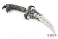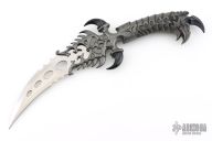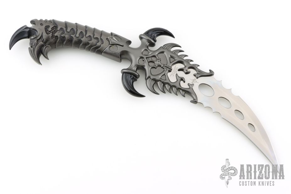This rare and retired KIT RAE KR9 Black Legion knife is a stunning piece made by United Cutlery. The spear point stainless steel blade is over 5 inches long and has unsharpened edges. The handle is cast and the blade is satin polished. Has a couple light scratches, otherwise excellent condition.
