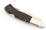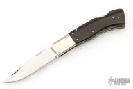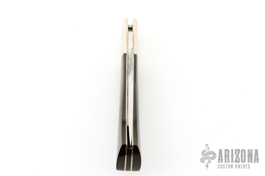 This Lockback Folder from Frank Centofante features a hand rub satin finished blade with nail nick. The handle has nickel silver bolsters, micarta scales, nickel silver liners and stainless steel lockbar.  Has some scratches, otherwise good condition.