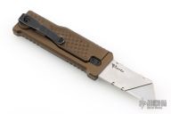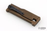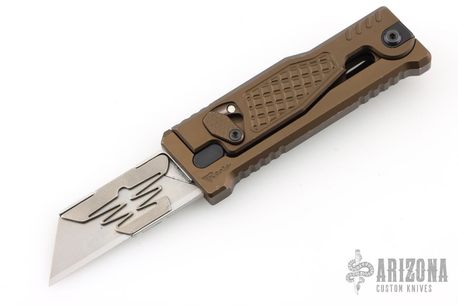 The Reate EXO-U is a compact version of the classic EXO gravity knife but sports a sleek, lightweight aluminum body. This little dynamo keeps the same playful, fidget-friendly spirit but trims the fat—and the price. It works with any standard utility blade. Swap out your beat-up blades in a snap thanks to the stainless steel holder with an innovative, straightforward spring mechanism. With its swivel safety switch, you can lock the blade securely, whether open or shut. The EXO-U utility gravity knife is not just a great tool. Has some scuffs and scratches, good condition otherwise.