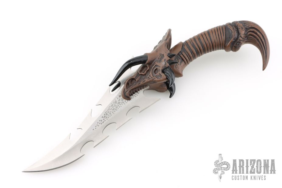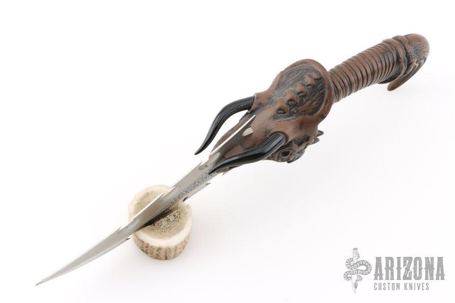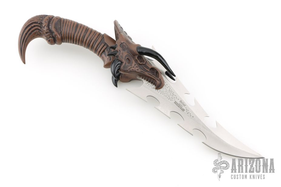 A new member to the Relic Series is the Cretaceous Bowie, patterned after a dinosaur with horns and armor from the Cretaceous Era. Features include an intricately detailed skull guard with horns and claw pommel.