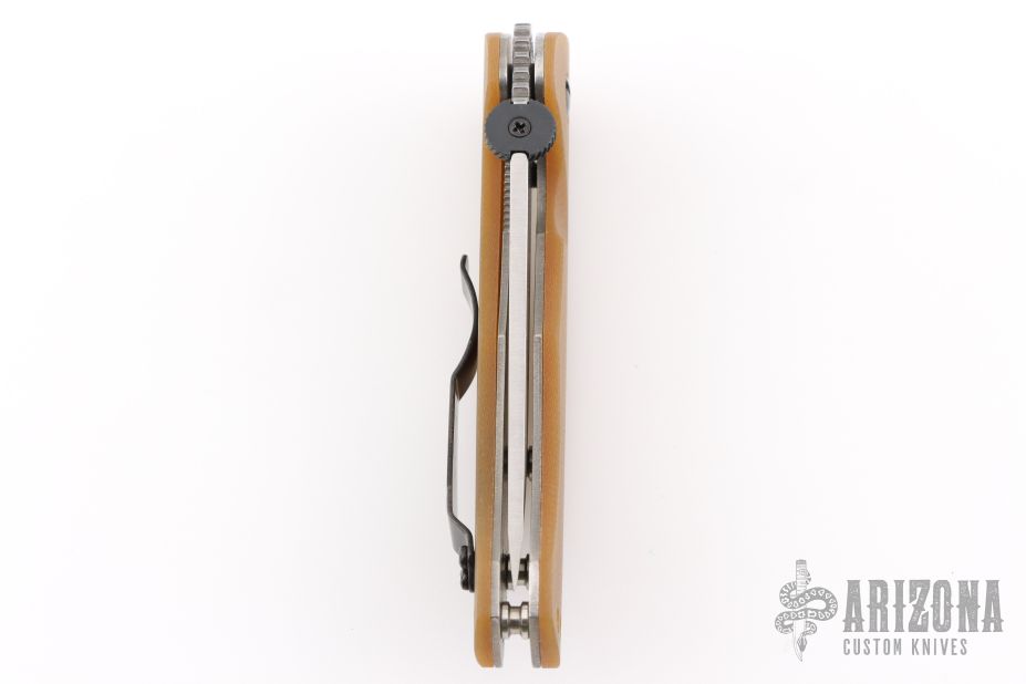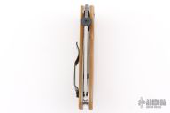 This Emerson Swordfish has a stonewash finished blade with swedge, Pete Grey XL thumbdisc, notched thumbrest. The handle has custom Vintage Honey G-10 scales by Andrew Charlet, titanium liners, stainless steel clip. Signed by Ernest Emerson on the blade. #0057. Includes the original box, black G-10 scales and papers. Excellent Condition.