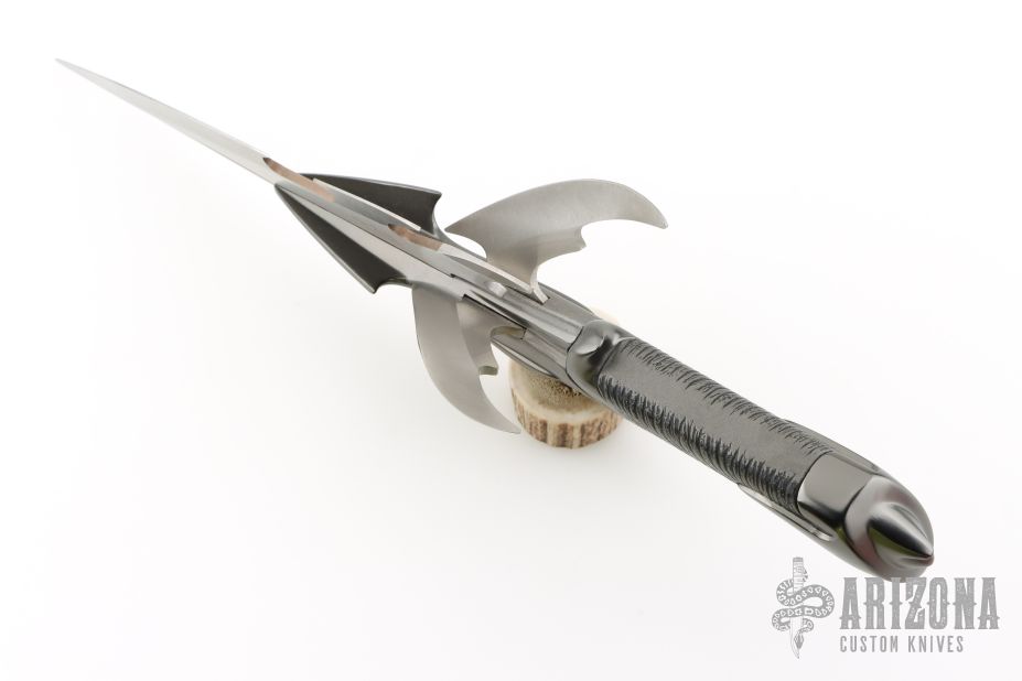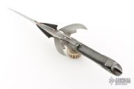 Gil Hibben lives and works in LaGrange, Kentucky. He began making knives part-time after his discharge from the Navy in 1956. He sold his first bowie knife for $45 and that sparked his long and famous career as a professional knife maker. While living in Seattle, WA after his Navy discharge, Gil worked as a machinist for Boeing Aircraft and learned a lot about metals and their properties. In 1964, while living in Salt Lake City, Utah, Gil started making knives full time. This was also the year Gil started making knives from the relatively new 440C steel. Although it is the industry standard now, Gil believes he was the first custom knife maker to use 440C. Hibben has been a full time custom knifemaker since 1957. Over the years Gil achieved fame as a premier custom knife maker and his work has been featured in, and on the covers of, national gun and knife magazines. He has established a whos-who following of collectors including John Wayne, Elvis Presley, Steve McQueen, Sylvester Stallone and Steven Segal or world leaders such as Israel's Defense Minister Moshe Dayan, the Sultan of Brunei and Vice-President Dan Quayle. He has taught and influenced some of the other legendary knife makers such as S.R. Johnson, Harvey Draper and Buster Warenski among countless others. Hibben designed the first line of Browning hunting knives in 1968, the American Kenpo Knife for Ed Parker. Gil's fame dramatically increased in 1988 when Sylvester Stallone, who had purchased several of Gil's custom knives for his own collection, asked Gil to design the now famous knife used in the movie Rambo III. Inducted into the Blade Magazine Cutlery Hall of Fame in 1990.