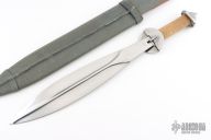 "The WWI originals were financed by Lord Howard de Waldron of Chirk Castle and presented to the 9th Battalion RWF. Supposedly based on a medieval Welsh sword pattern: the hinged hilt guard was officially patented. Within the battalion they were issued to machine-gunners and possibly other specialists such as bombers. Some blades are engraved "Dros Urddas Cymru" (For The Honour Of Wales)"