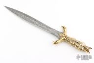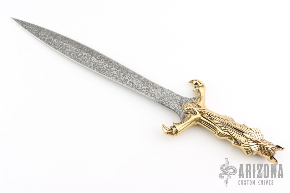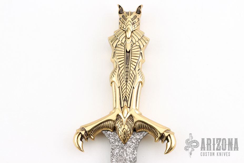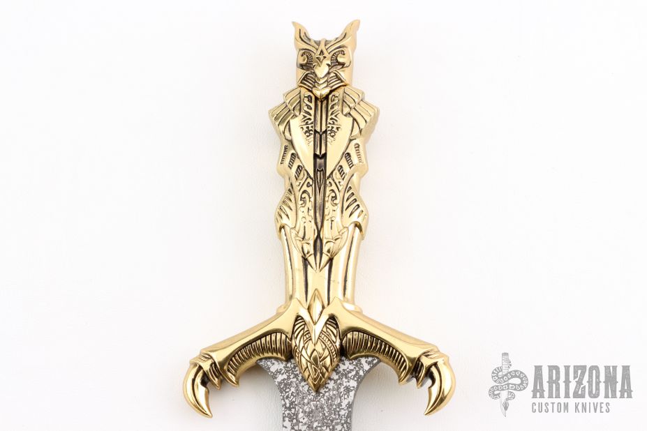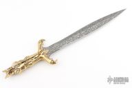 This collectible sword was constructed with careful attention to detail and craftsmanship, using only the highest quality materials. The solid metal handle parts are cast with intricate details and plated in 24-karat antique gold with a special process to give an "aged" look. Available in three versions, the UC1297 special gold edition is strictly limited to 2400 individually serialized pieces worldwide. Features include 24-K gold plated parts and blade forged of 420J2 stainless steel with a beautiful Damascus-etched finish.