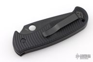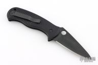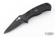This Citadel by Spyderco features a black blade with swedge and thumb hole. Has notched thumb rest. Frame is milled and textured black aluminum with push button and safety. Clip is tip up carry, and reversible for right or left handed carry. Comes with original box and papers. Has a couple very light scuffs, otherwise excellent condition.