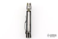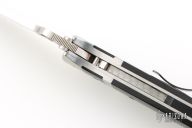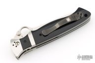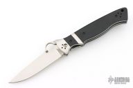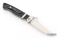 This Vallotton Sub-Hilt Auto by Spyderco was converted by Butch Vallotton, it features a satin finished S30V blade with a thumb-hole, dual thumb-studs, and notched thumbrest. The handle has stainless steel bolsters, black G-10 scales, stainless steel liners, black G-10 backspacer, and 4-way reversible black stainless steel clip. Nice detent, lockup and blade seating, but if you fire the knife, the kick spring gets in the way of the liner engaging the blade, a little more of the locking liner needs to be removed from the backside. Can be opened manually or as an auto. Comes with original box and papers. Excellent condition.