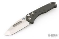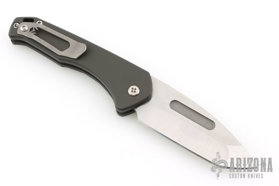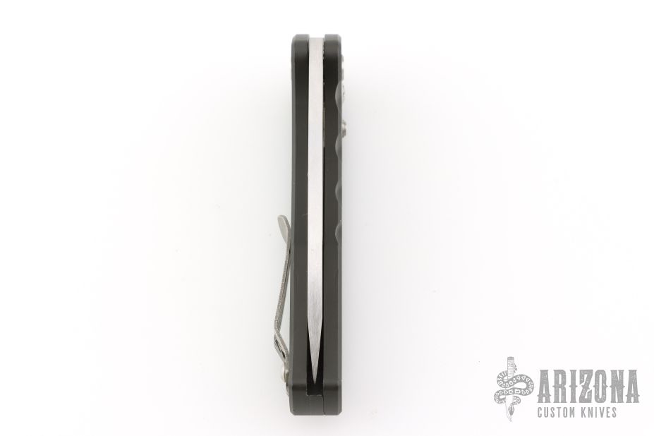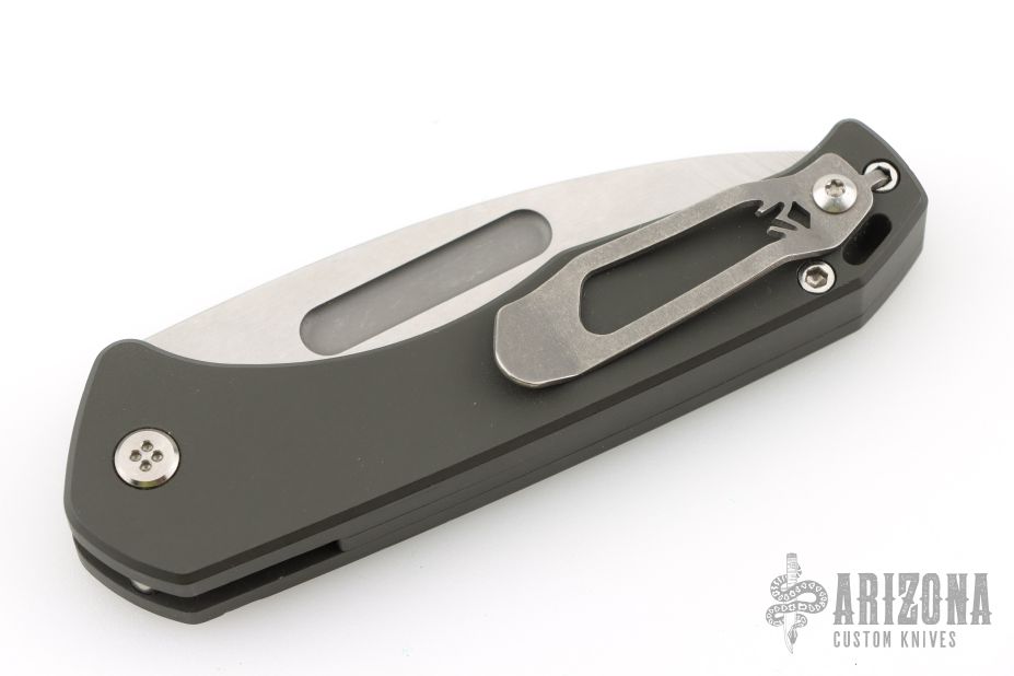 The Praetorian Swift Auto by Medford Knives features a tumbled tanto blade with large fullers. The handle is composed of anodized and tumbled aluminum and features a lanyard hole in the pommel and a anodized titanium tip up pocket. Satin hardware. Has some light scuffs, otherwise excellent condition.