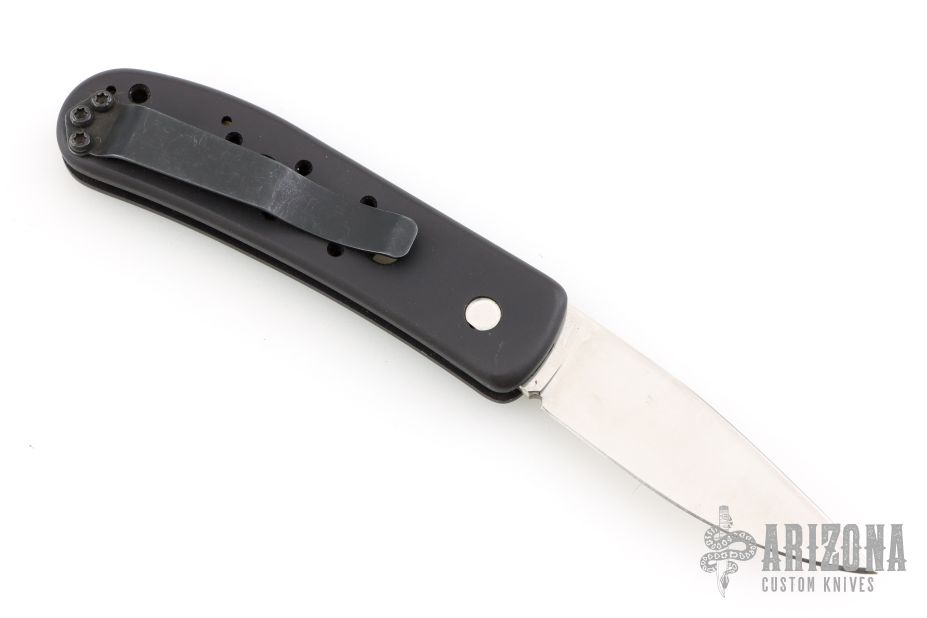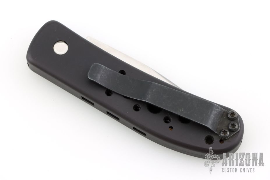 This Auto by Crawford Knives features a satin finished drop point blade. The handle has a black anodized aluminum frame with a stainless steel tip up three-hole clip. Nice action and lockup. Has some light scratches on the clip, excellent condition otherwise.