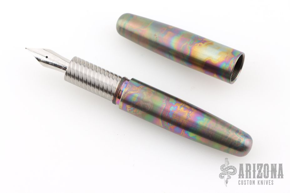 All-titanium construction with a flamed finish and internal weight reduction for improved balance. Features a Fine Jowo #6 nib with a Kaweco mini converter.