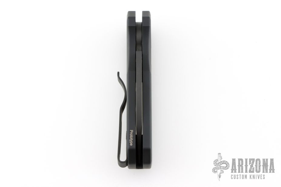 The Runt 5 by Pro-Tech Knives features a black sheepsfoot style blade.  The handle features a two-tone 17-4 steel handle with a black lip pearl button, black stainless steel pocket clip. Comes with original box and papers. Excellent condition. Prototype