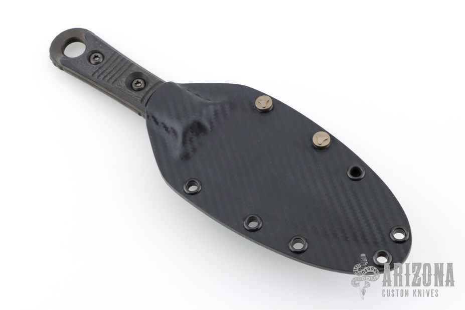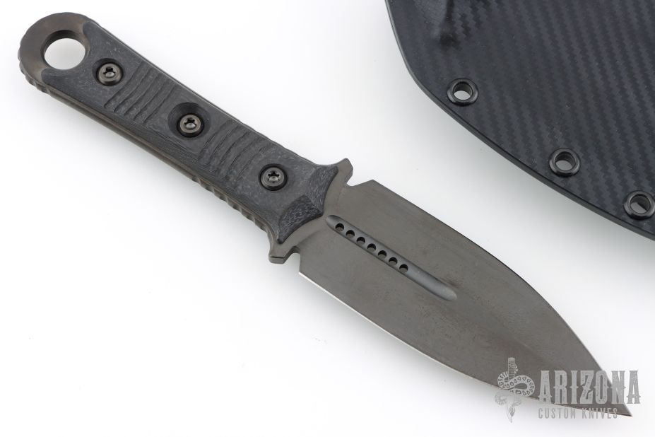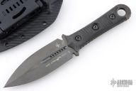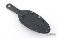 This SBD by Microtech Knives and Borka Blades features a DLC finished double-edged blade with .188" blade stock and 1.556" blade depth, full tang construction with carbon fiber scales. Comes with the original kydex sheath, box and papers, dated 08/2021 s/n 319. Excellent condition.