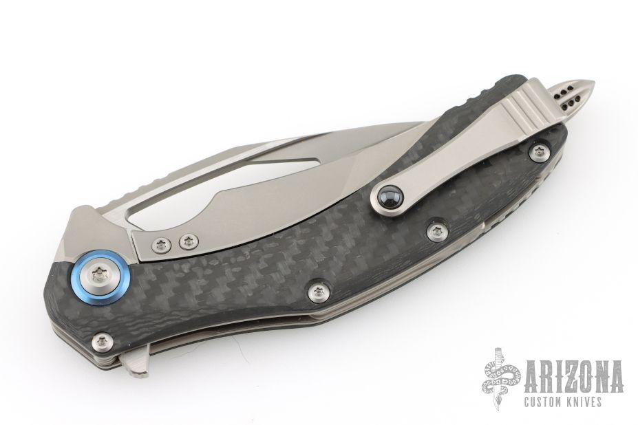 165C-4 CFTI Matrix Titanium Handle Hand Rubbed Satin Standard Blue Ti Collar CF Scales