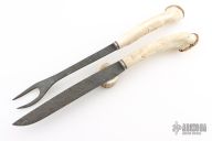 Damascus BBQ Set - Carved Handle Fork & Knife