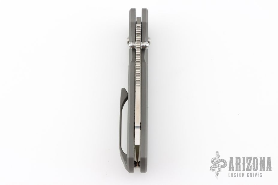 - 180-grit quartz black bead blasted finish on titanium handle scales, filler, and milled clip for a delicate touch.