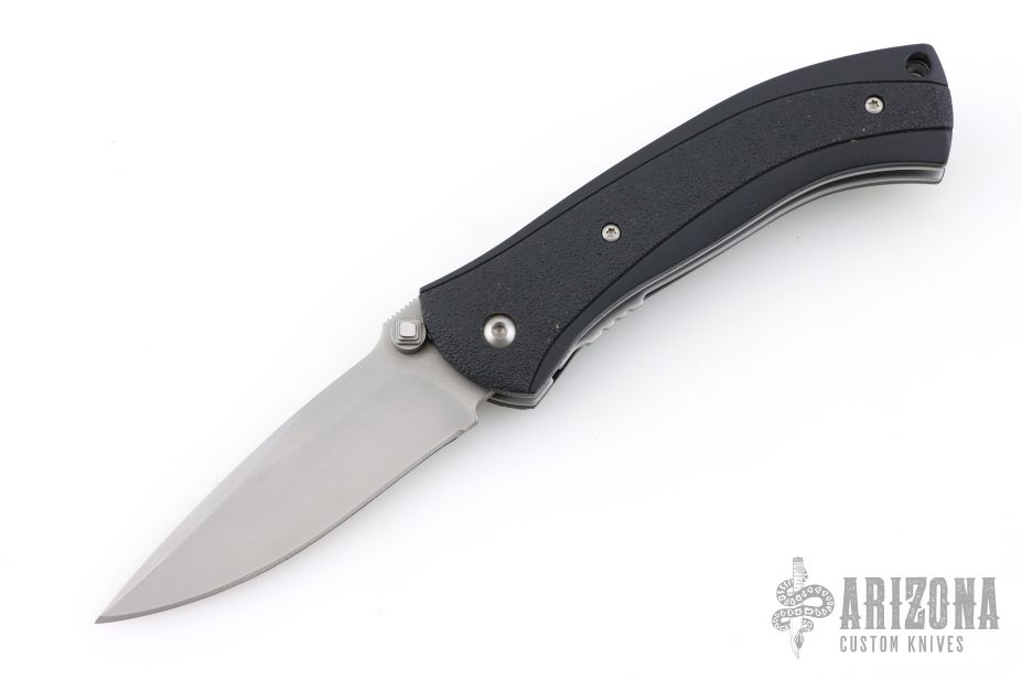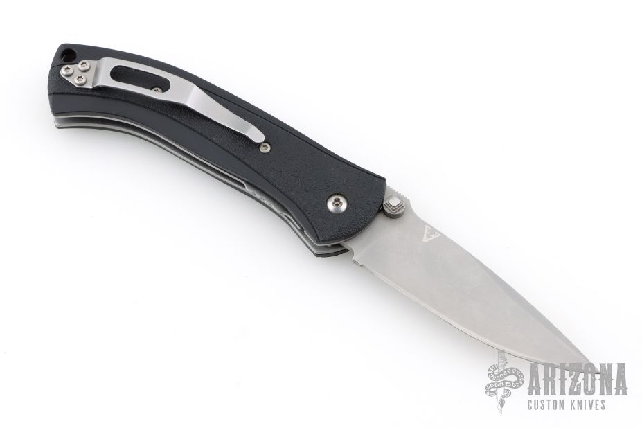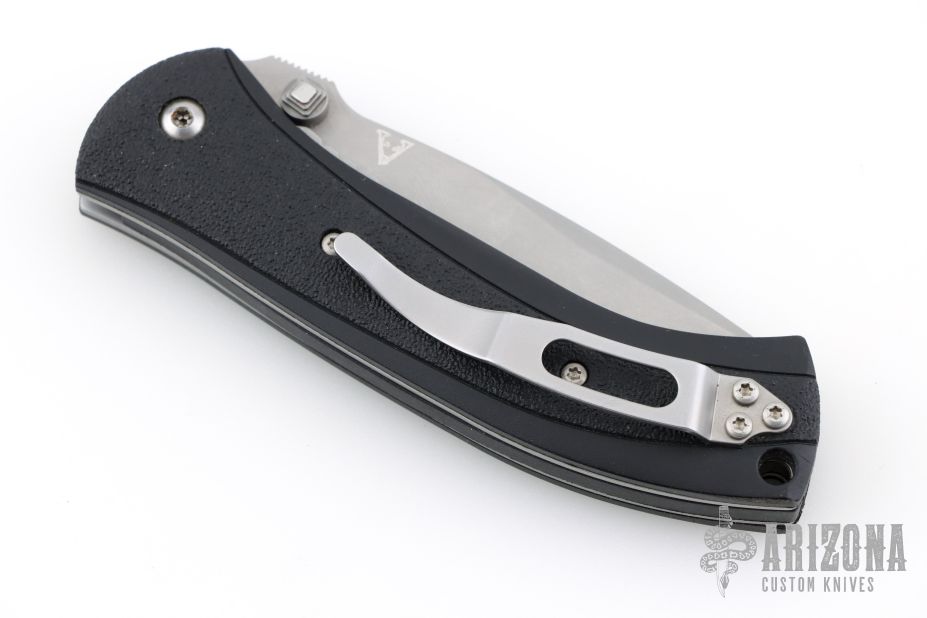 This Scale Release Automatic from V&D Knives (Butch Vallotton and Matt Diskin) features a bead blast finished spear point blade with swedge, dual thumb studs and notched thumb rest. The handle is comprised of black polymer scales over steel liners and black polymer backspacer. Lanyard hole in pommel. Stainless steel tip up clip and lanyard hole in pommel. Comes in a zipper case. Has a couple light scuffs, excellent condition otherwise.