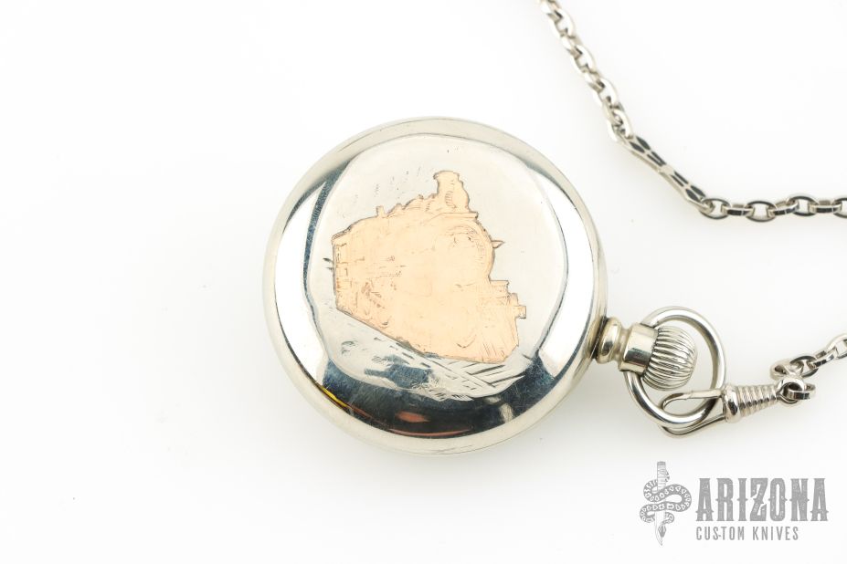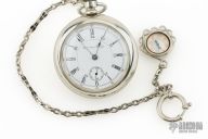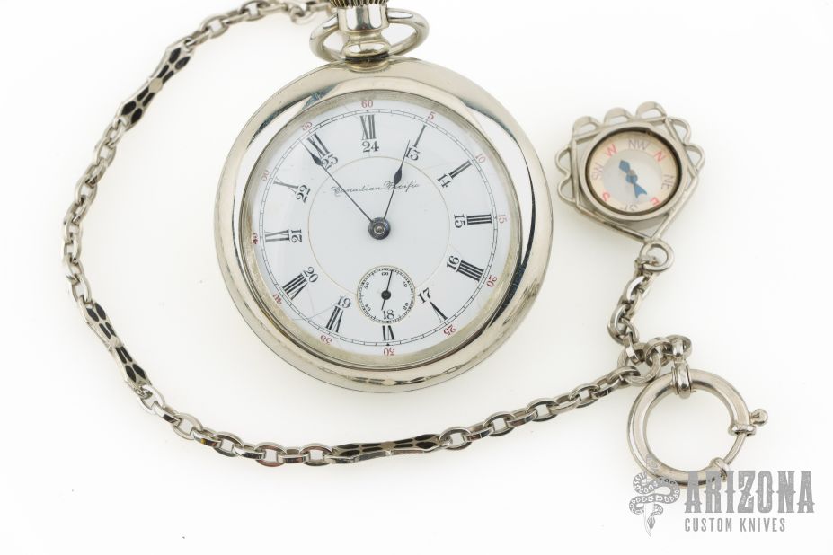 Hampden 1882 Canadian Pacifici RR 18 Size w/ Gold Locomotive Inlay & Antique Compass Fob