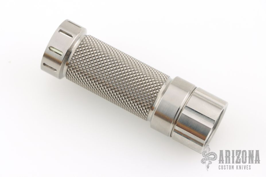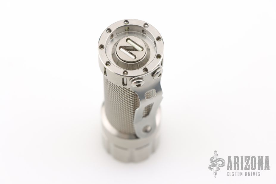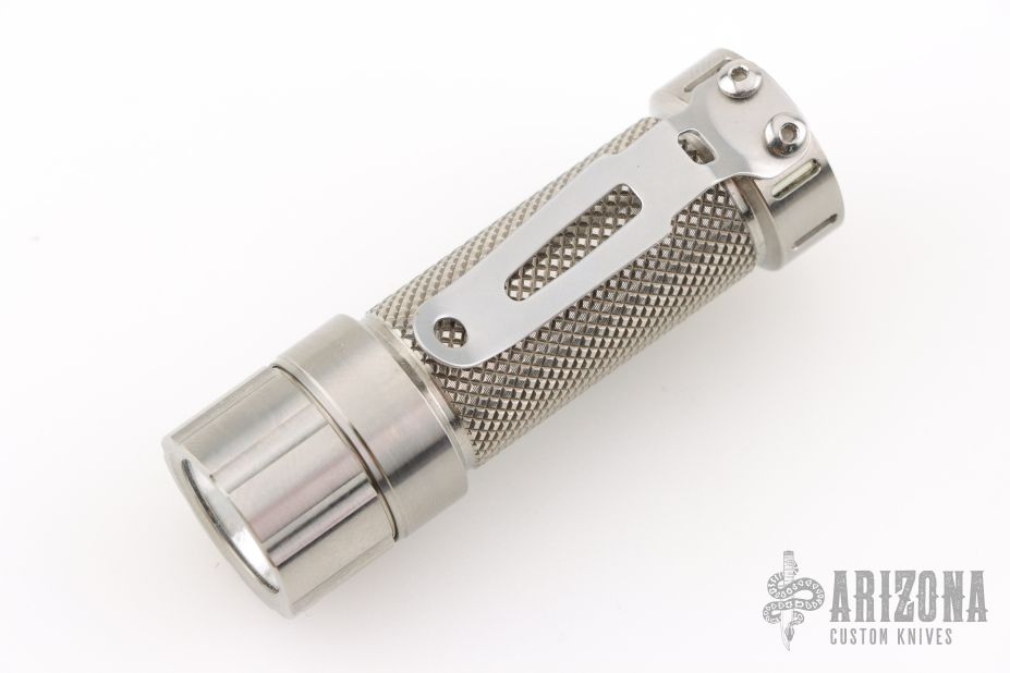 Tain Azco titanium flashlight with 12 tritium inlays. Takes a 16340 battery. ZP-L V2-4A NW emitter and L-M-H driver. Excellent condition.