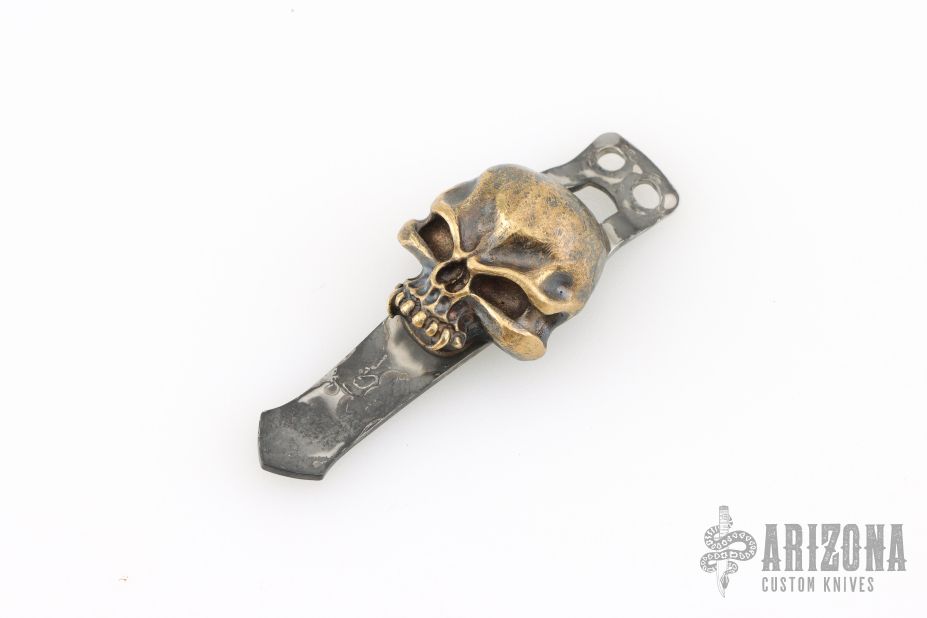 Clip with bronze Hardness Warrior Skull by Steel Flame. 2-Hole torch clip. Excellent condition.