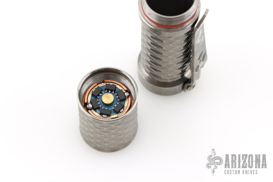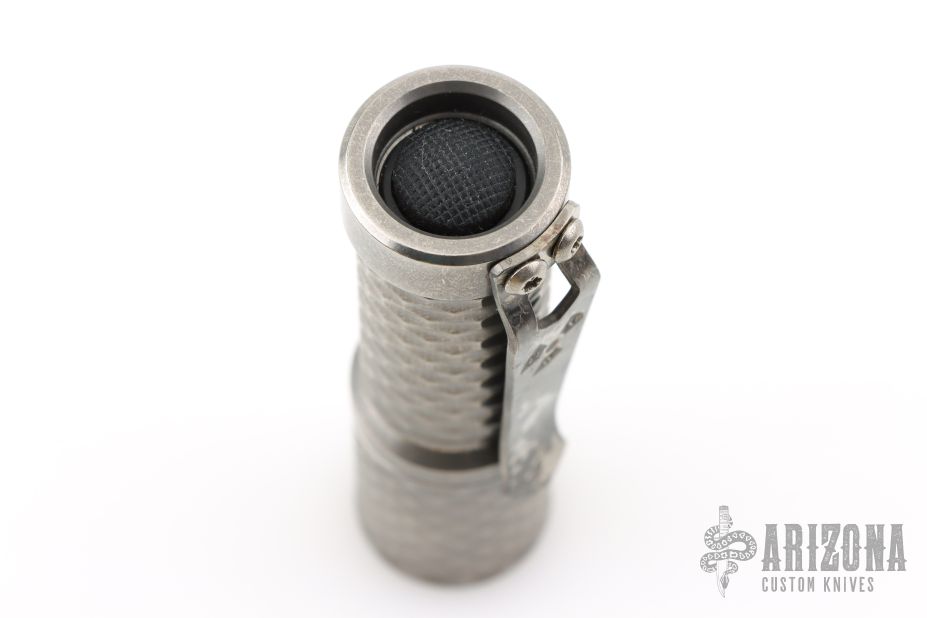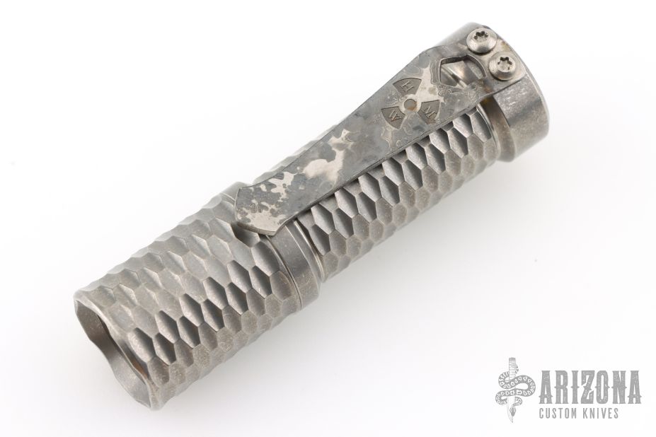 This Gunner Grip Trident by Hanko Machine Works is made from titanium, it is stonewashed, has a tip up Steel Flame titanium clip. Comes with a hard case. Excellent condition.