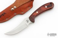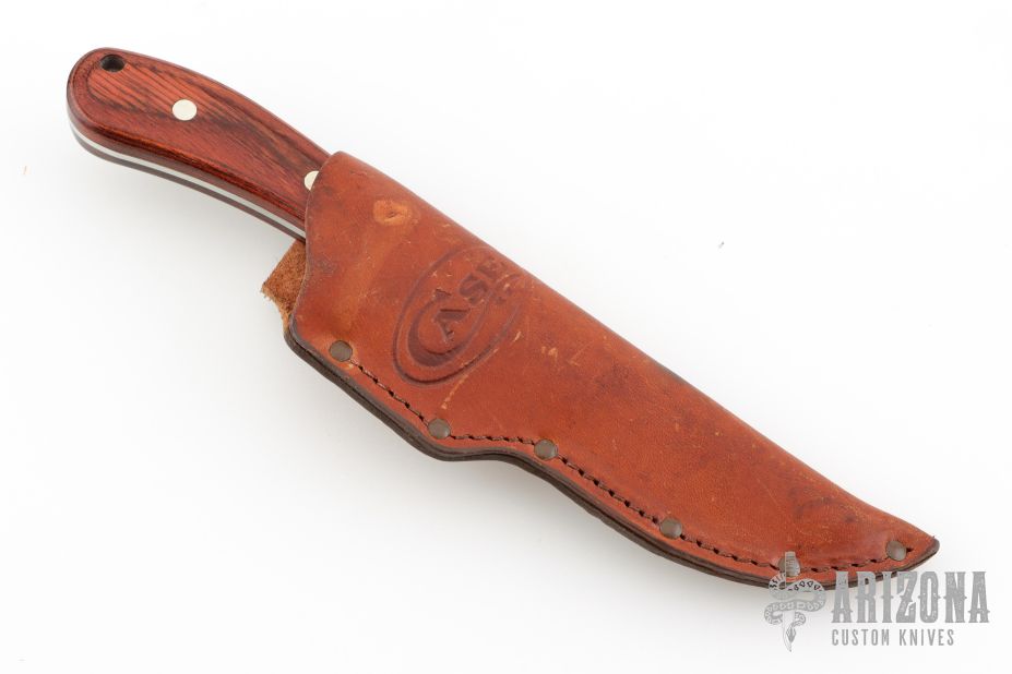 The illustrated Case Knife is the Case Ridgeback Skinner Knife with Rosewood handle designed by Blackie Collins. The Case Ridgeback Skinner Knife features a 3 1/2" swept skinner blade made of Tru-Sharp surgical steel. The blade has a friction grooved thumb rest. The Case Ridgeback Skinner Knife has full tang construction with contoured Rosewood handle scales, and lanyard hole. A genuine leather belt sheath is included with this Case knife. The Case Ridgeback Skinner Knife with Rosewood handle has an overall length of 8 1/2", and weighs 4.3 ounces.