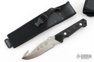 This Huntac by Puma features a satin finished blade with guthook, nothced thumb-ramp, .155" blade stock and 1.433" blade depth. The handle features full tang construction with textured frn scales, and lanyard hole in pommel. Comes with original box and sheath. HAs a couple light scuffs, excellent condition otherwise.