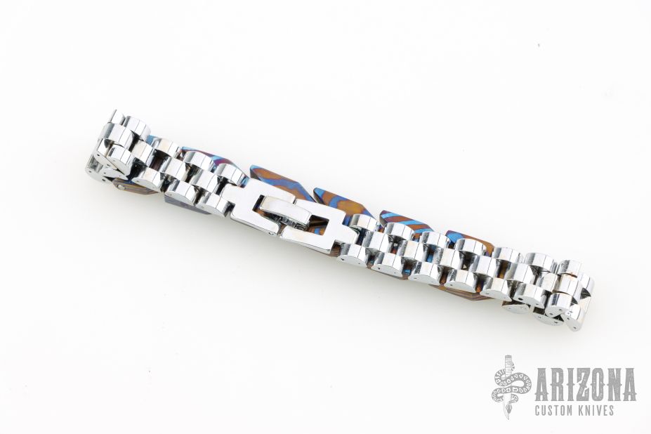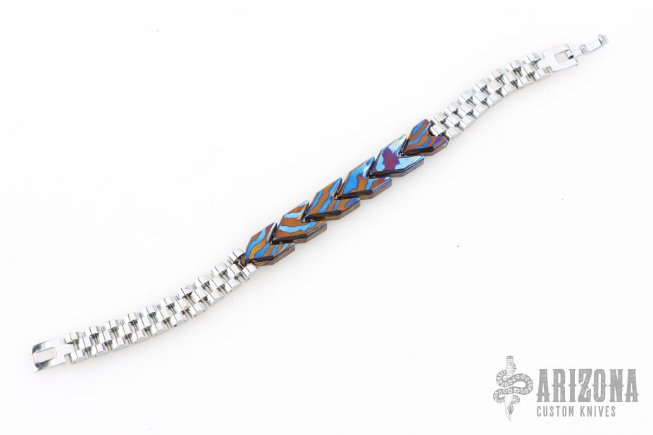 Timascus Arrowhead Bracelet with stainless steel band. Bracelet is .479" wide. Comes with original box. New from maker.