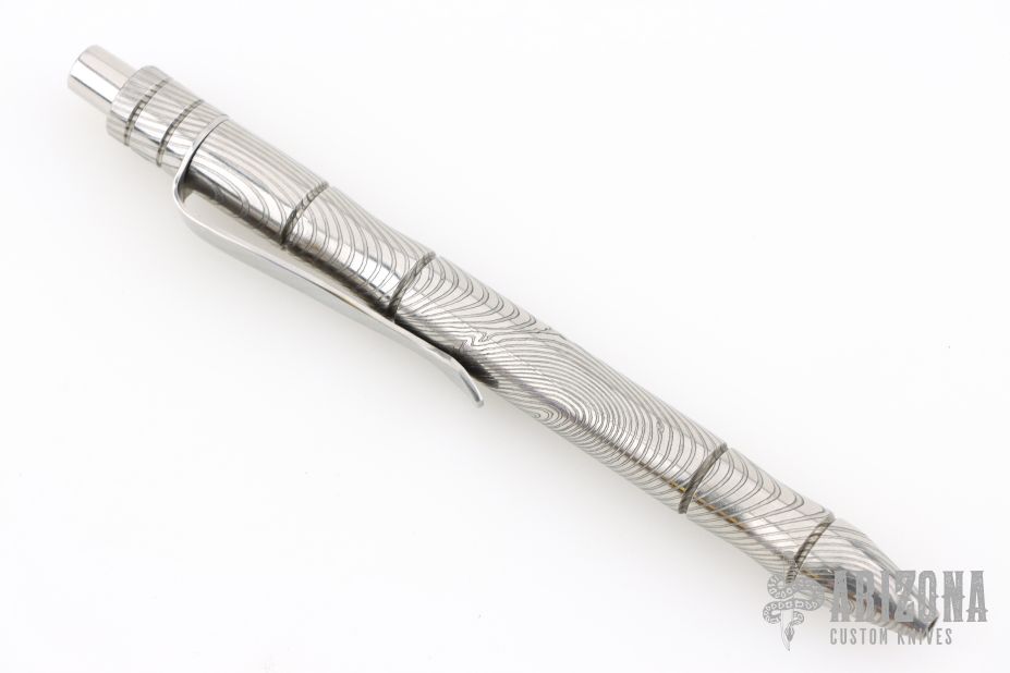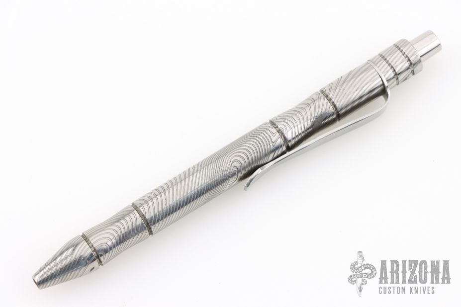 This Stainless Damascus Pen by EMA Forge takes a Parker style refill. This is not a click pen, the cartridge is fixed in the out position all the time. Comes with original box. New from maker. Does not come with an ink cartridge.