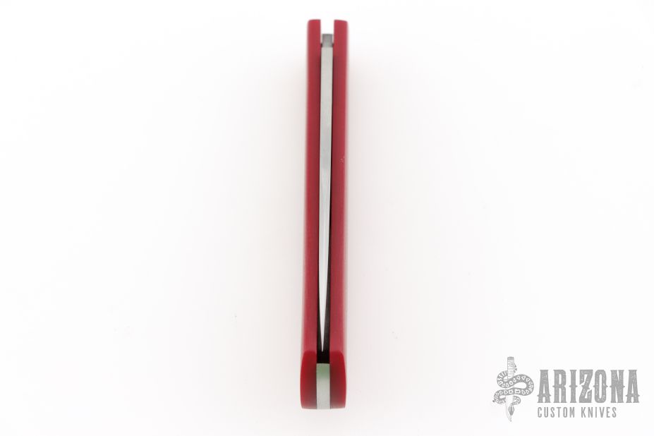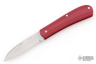 This slipjoint by Ben Mack features a hand rub satin finished blade with nail nick. The handle has red G-10 covers and an 80CRV2 spring. Has half-stop, flush in all positions. Comes with a zippered case. New from maker!
