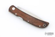 This Falcon by Al Mar features a satin finished blade with nail nick. The handle has wood scales, brass liners, stainless steel backspacer. Comes in a nylon belt sheath. Has some light scuffs and scratches, great condition otherwise.