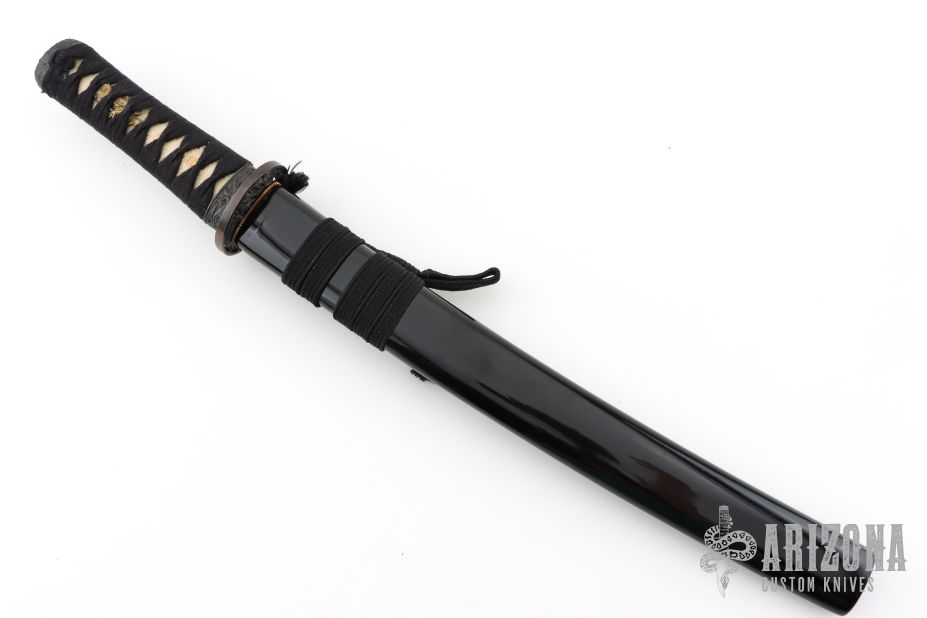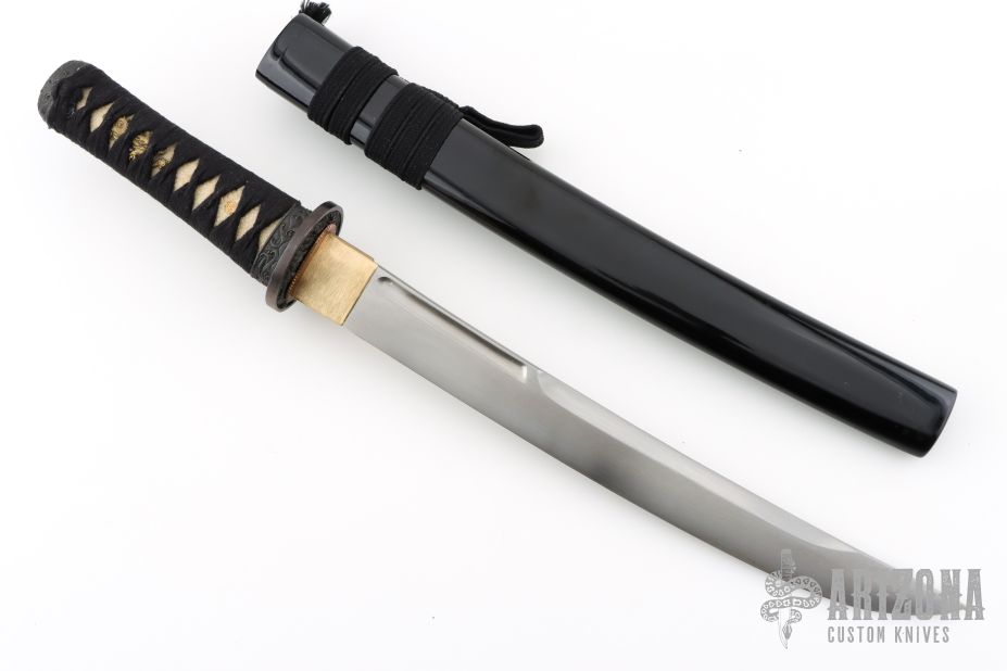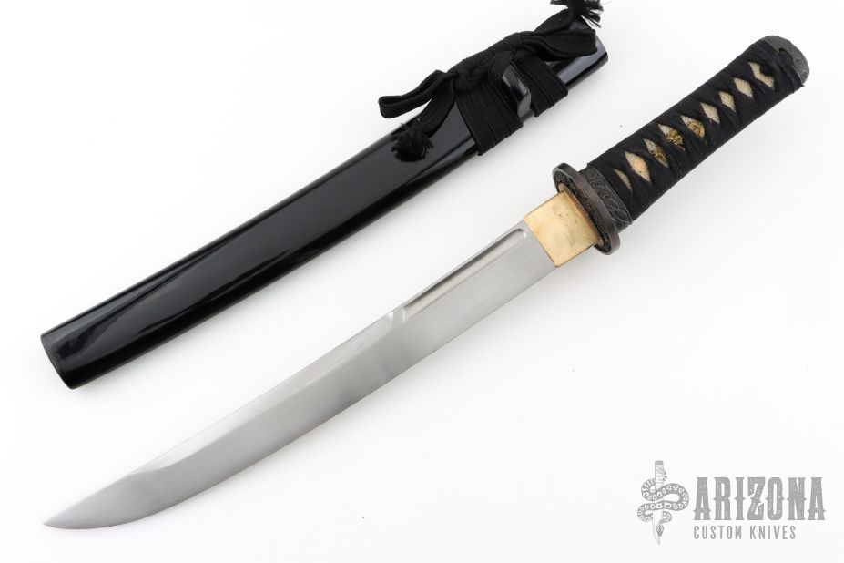 • Carbon steel tanto blade with a sharp edge and a satin finish.