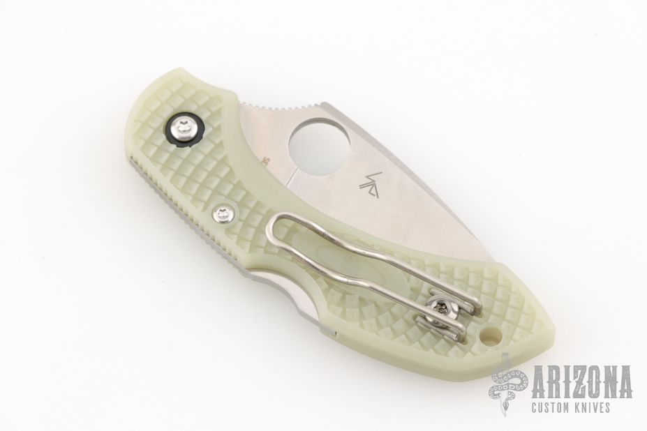 The defining feature of this unique knife is its handle, which is injection molded using glow-in-the-dark fiberglass-reinforced nylon (FRN). The tough, lightweight FRN material is enhanced with phosphor, a chemical that becomes energized when exposed to light and can then radiate its own visible light in the dark. Like all Dragonfly 2 handles, this one features Spyderco's signature Bi-Directional Texture™ pattern to ensure a secure, non-slip grip.